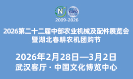 为深入贯彻落实《中共中央 国务院关于进一步深化农村改革扎实推进乡村全面振兴的意见》全面实施农业农村部“智慧农业行动计划”,推动农机装备高质量发展,加快先进适用农机研发应用,老旧农机报废更新,发展智慧农业,拓展人工智能技术应用场景。以科技创新引领先进生产要素集聚,发展农业新质生产力。2026第二十二届中部农业机械及配件展览会暨湖北春耕农机团购节定于2026年2月28日-3月2日在武汉客厅·中国文化博览中心举办。现将有关事宜通知如下:
