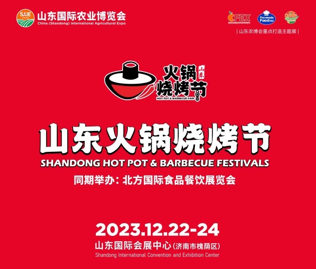 2023年12月22-24日在济南的山东国际会展中心举办2023山东火锅烧烤节。同期举办2023山东国际农业博览会、中国北方国际食品餐饮展览会。